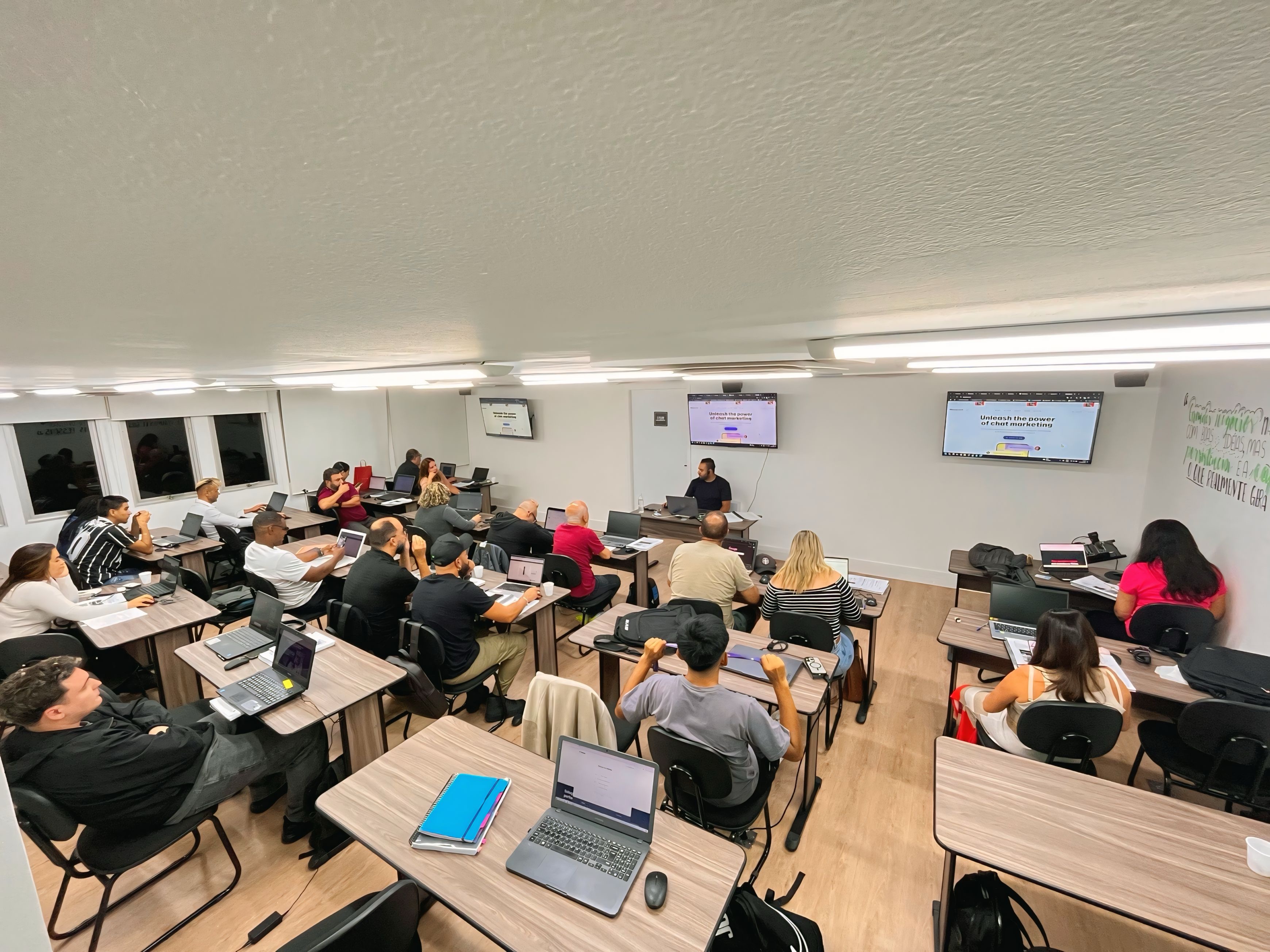 Aprenda marketing digital no mundo real, com aulas presenciais que transformam conhecimento em resultados.